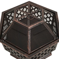 This brushed rustic-style fire pit will make a decorative and atmospheric addition to your garden or patio, while also keeping you warm when it gets colder in the evening. Made of steel, the fire pit is excellent in absorbing and radiating heat. Featuring a large and deep bowl, this fireplace allows for a large fire for you and your family to enjoy for hours. The mesh allows you to watch the burning fire, and encloses the fire for safety as well as preventing sparks and debris from flying out. Additionally, there is a convenient ring in the mesh cover so that you can carry it easily. The included metal poker can be used for both removing the mesh cover and rearranging the logs. Important notes: It can only be used outdoors. Do not touch the product when there is still burning wood inside or short after it.
