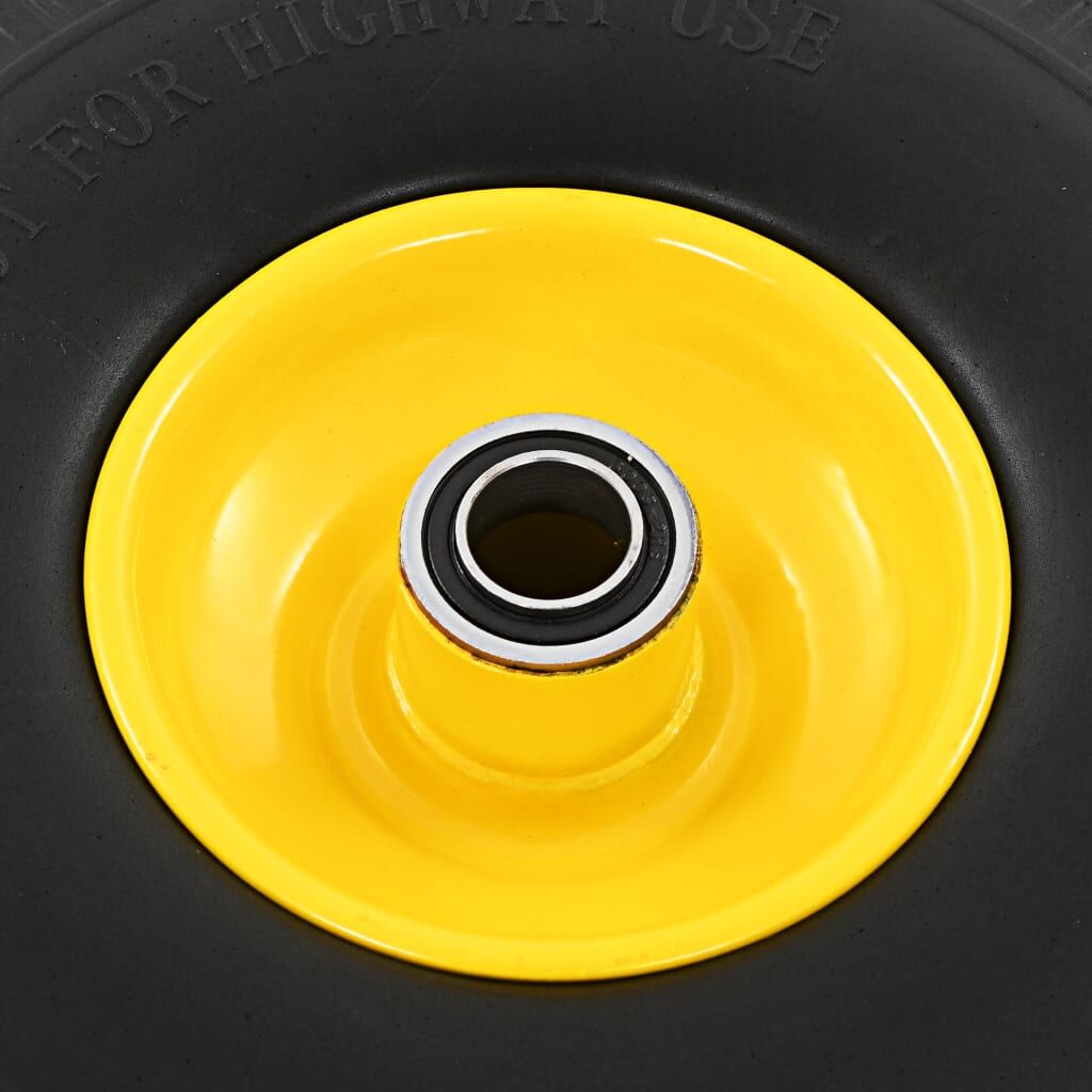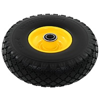 These puncture-proof sack truck spare wheels are ideal for heavy-duty use when moving loads with your sack trucks, hand trucks, trolleys, carts, dollies, wheelbarrows, etc., even on uneven grounds. The solid tyres are made of durable, abrasion-resistant PU elastomer and have a special tread design that provides added grip at higher speeds. The wheel rims are made of sturdy metal. The spare trolley wheels have a universal size and can be easily installed to your sack trucks, trolleys, etc. Delivery includes 2 wheels.