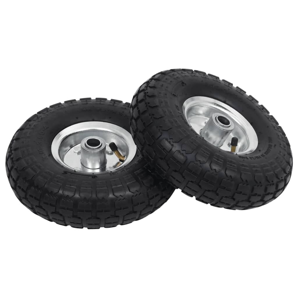 $42.29These puncture resistant sack truck spare wheels are ideal for heavy-duty use when moving loads with your sack trucks, hand trucks, trolleys, carts, dollies, wheelbarrows, etc., even on uneven grounds. The pneumatic tyres are made of durable, abrasion-resistant rubber and have a special tread design that provides added grip at higher speeds. The wheel rims are made of sturdy metal. The spare trolley wheels have a universal size and can be easily installed to your sack trucks, trolleys, etc. Delivery includes 2 wheels.