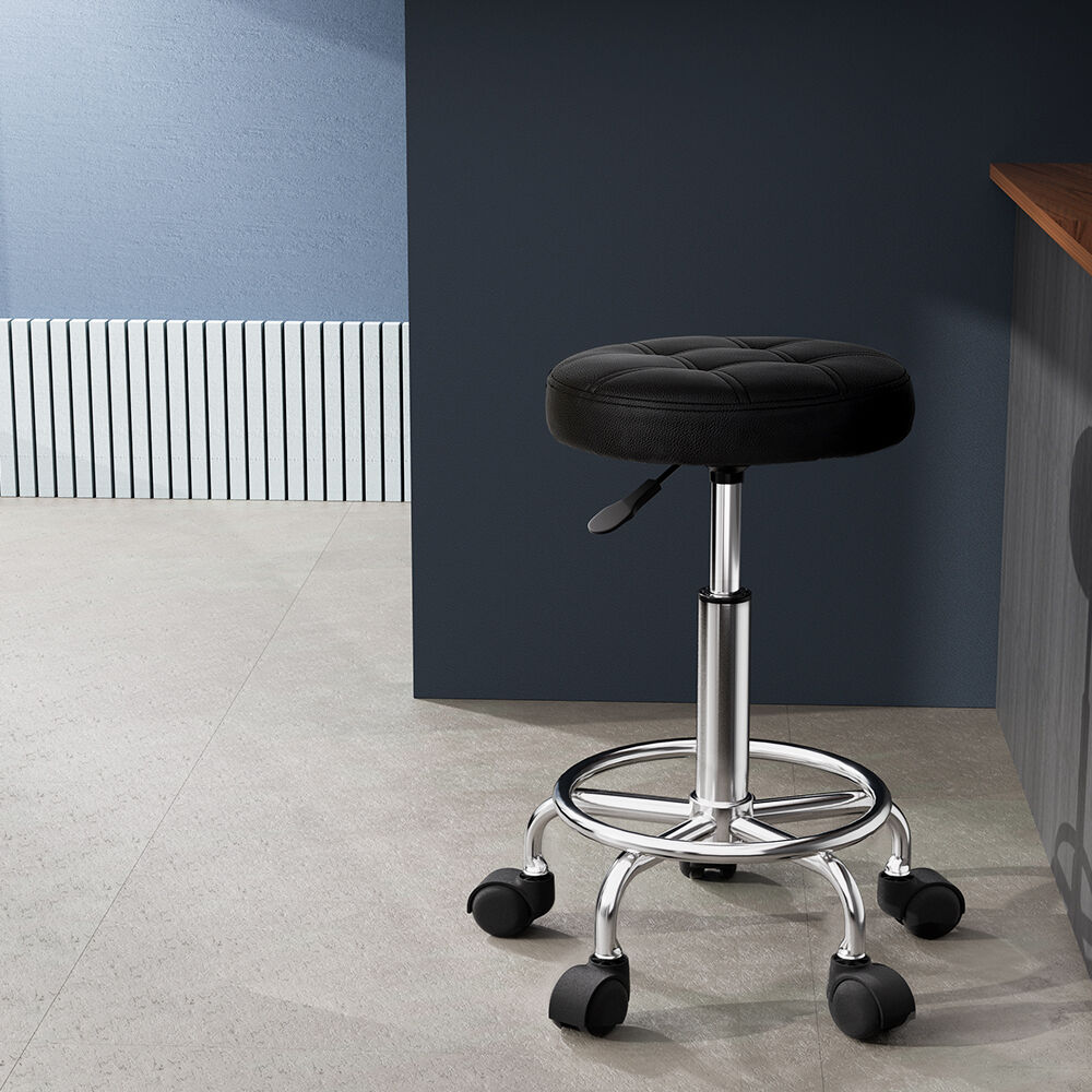 Looking to add a glamourous touch to your salon? You can do it effortlessly with the Artiss' gorgeous salon stool. It's not just for a salon, but you can use these stools in your tattoo parlour, medical clinic, café, and music studio. Our salon style stools will instantly give your space a stylish and modern look. These stools are designed for ultimate comfort and convenient use. It features a round seat design that makes you feel comfortable even if you've been sitting for long hours. The thick foam padding makes the seat soft, and the PU leather upholstery with a light sheen highlights its alluring texture. Our salon stool also has five nylon smooth castor wheels that offer easy manoeuvrability. The seat is 360˚ rotatable, enabling you to face any direction. It also comes with a heavy-duty footrest and base for added stability and comfort. You can even adjust its height with an SGS-certified gas lift lever. So why wait? Purchase this beautifully designed salon stool. You won't regret it.