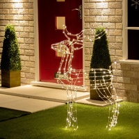 The festive reindeer is easy to assemble, as the 3 pieces in the box simply fit together and are instantly ready to be used. The reindeer is illuminated by 250 separate LED outdoor Christmas lights, making it a real stand out Christmas decoration for your home this festive season.