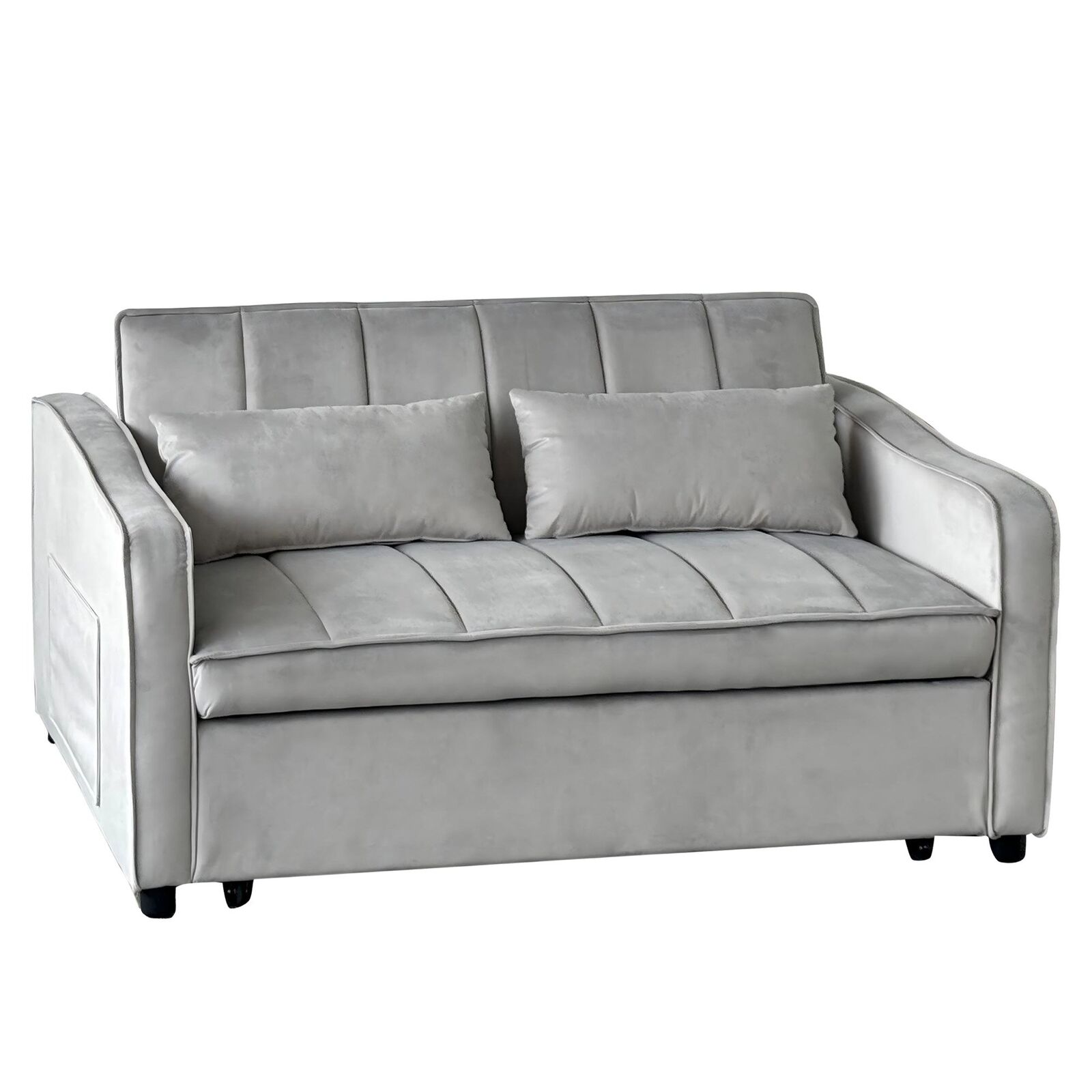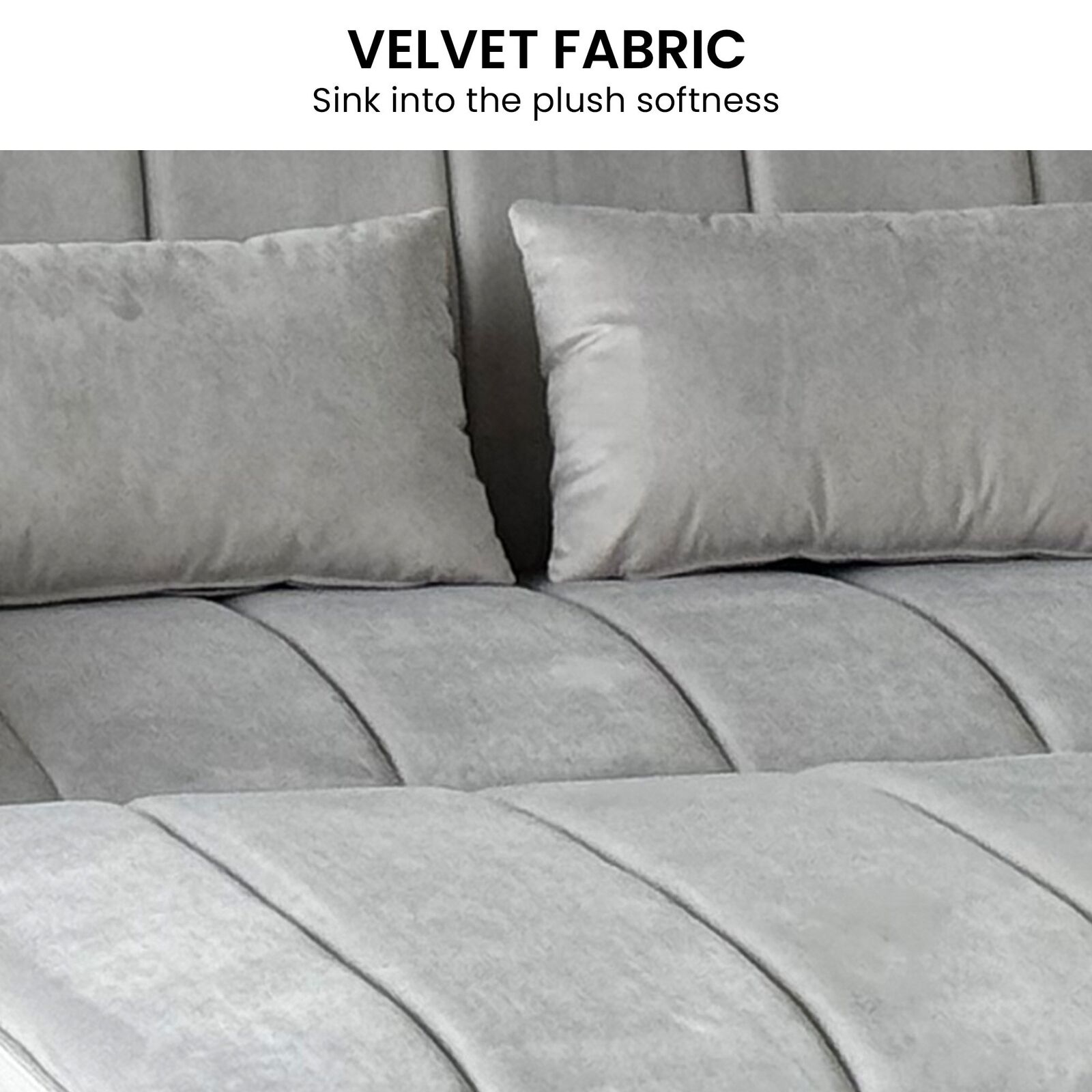 Sarantino Fenton Velvet 2-Seater Sofa Bed - Light Grey