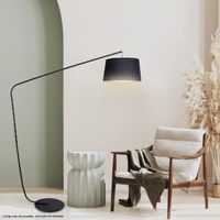 This floor lamp is tall enough to provide overhead lighting, making it a great alternative to hanging pendant lights. Its arm has a wide reach so you can place it over any desk or dining table for added lighting. The black shade also diffuses light for a softer and cosier effect.
