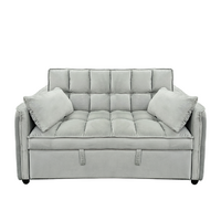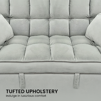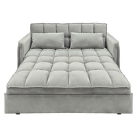 Sarantino Quincy 2-Seater Velvet Sofa Bed in Light Grey with Wooden Frame & Tufted Design
