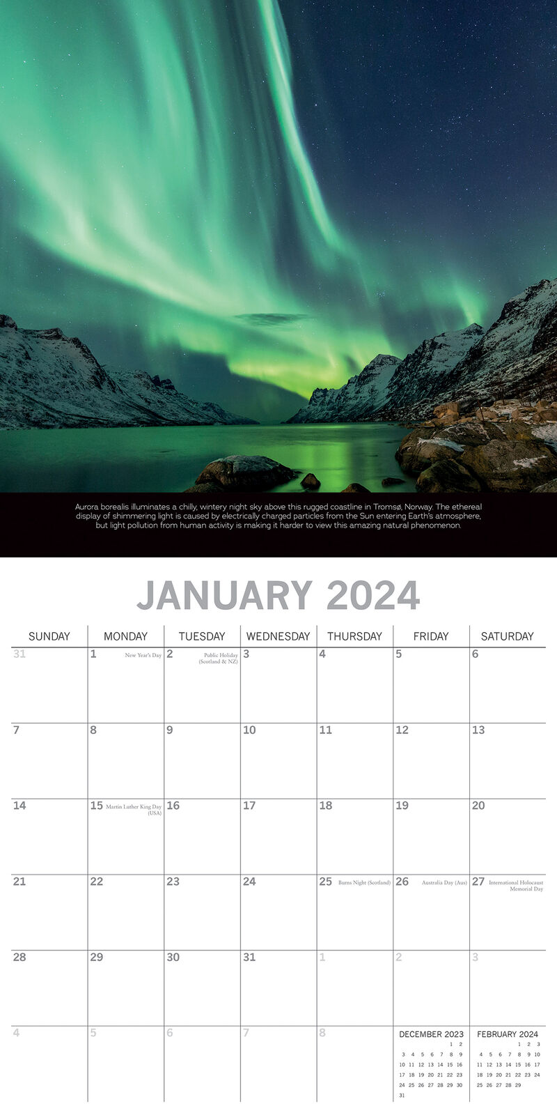 Brand New Calendar with Beautifully design, Sealed in Original Packaging, each calendar includes a large grid running from Sunday to Saturday. Publisher: The Gifted Stationery Co. Dimensions: 30cm (w) x 30cm (h) closed; 30cm (w) x 60cm (h) opened Time Span: 16 months (January to December 2024 monthly, September to December 2023 on-a-page) 2024 Square Wall Calendar featuring beautiful colour photographed images for every month of the year. Like most Wall calendars, this one comes with: