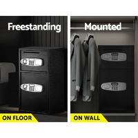 Better safe than sorry. The UL-TECH Digital Safe is a strong and secured unit that ensures all your precious belongings are kept under lock and key at all times. It features a 2-in-1 design with two safes integrated into one unit. The double safe comprises a solid power-coated steel frame with thick door and sides and a reliable twin-bolt locking mechanism. The concealed hinges are also tamper-proof. The safe is protected by a two-way access through a digital key pad and an emergency key if required. Inside, the safe is carpeted and has ample space for a variety of items, from jewellery to cash to important documents. The safe can be used as a freestanding unit or wall-mounted with pre-drilled holes to suit your requirements.