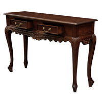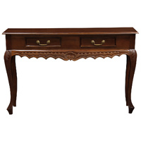 Immerse yourself in the opulent charm of the Seine 2 Drawer Carved Sofa Table, a masterpiece that blends Baroque elegance with practical functionality. Crafted from solid mahogany timber, this exquisite piece is a testament to timeless beauty and refined craftsmanship.The Seine tables intricate carvings and gracefully curved legs evoke the grandeur of 17th-century French design. Each hand-carved detail is a work of art, showcasing the skill and dedication of our artisans. The rich, dark finish of the mahogany timber adds a touch of sophistication, making it a striking addition to any room.The two spacious drawers, adorned with polished brass handles, provide ample storage for your essentials, ensuring both style and functionality. Whether used as a console table in your entryway, a statement piece in your living room, or a sophisticated addition to your bedroom, the Seine table is designed to impress.