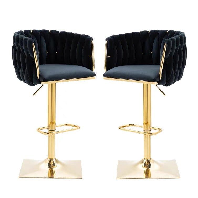 【WIDE APPLICATION】These velvet bar chairs have special woven backrest and golden finish, which is modern and elegant for kitchen, cafe, pub, etc. Meanwhile, you can install these stools effortlessly with detailed instruction and all parts we provide.