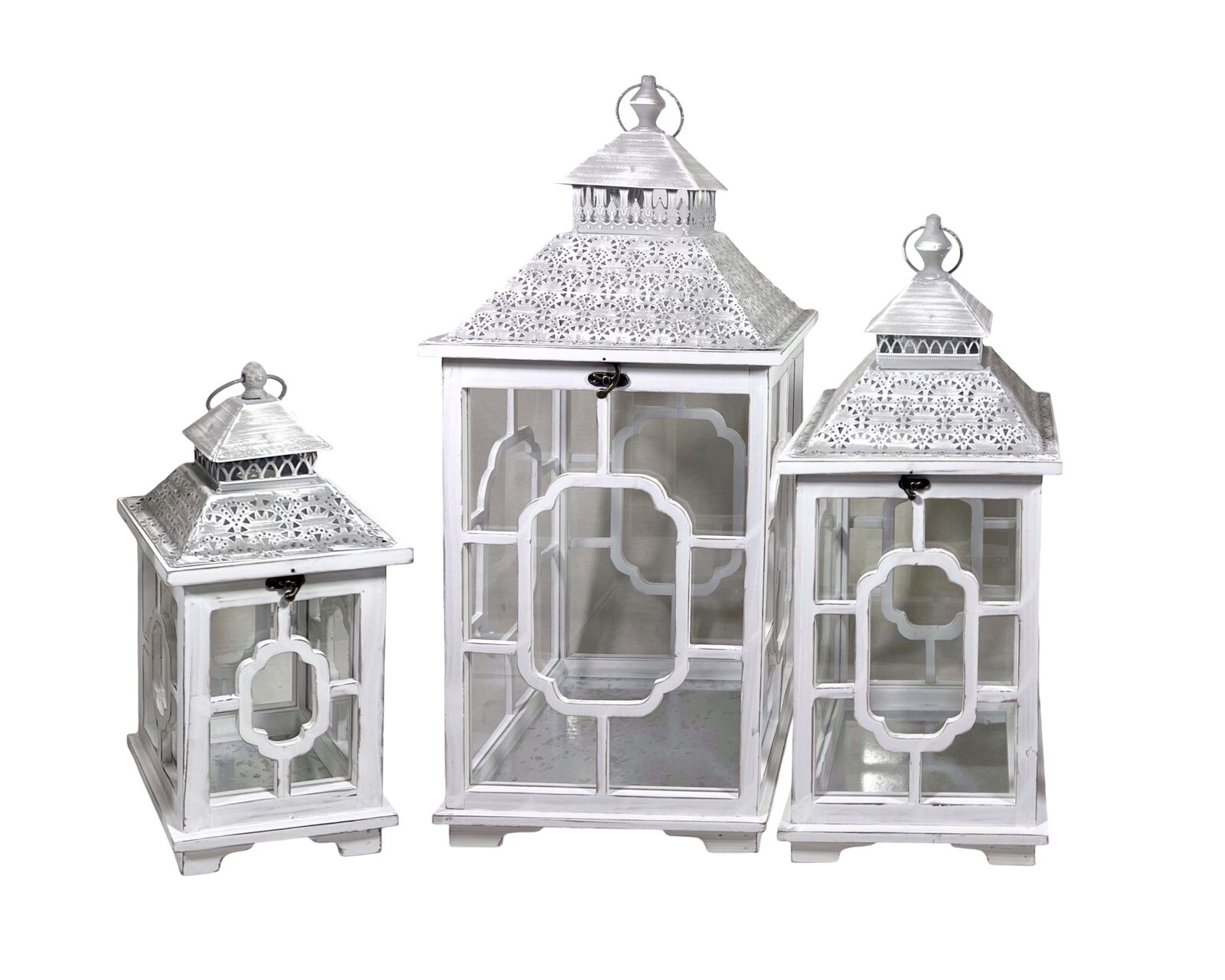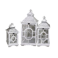 1 x Set 3 Wooden Lantern W Metal Roof