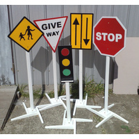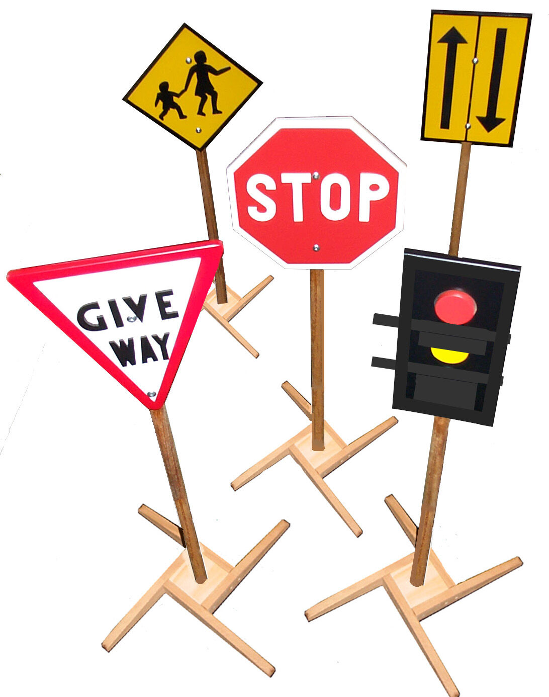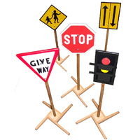 $207.73This set of Traffic signs offers a fabulous complement with bike rides. This set of 5 road safety signs will assist children becoming road safety aware. This set also great for Role play, which helps children to develop language and communication skills. It develops and promotes creativity and imagination. This resource also promotes social interactions, teaches daily routines ans skills. The set includes 5 signs basic signs: STOP, GIVE WAY, 2 WAYS, CHILDREN CROSSING and a traffic light that can change lights.Some basic assembly of the road signs is required. All signs are made of solid plantation timber and child safe materials.