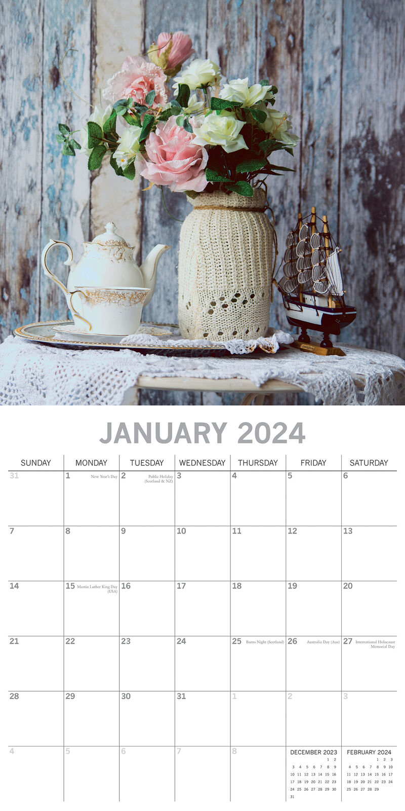 Shabby Chic - 2024 Square Wall Calendar 16 Month Lifestyle Planner New Year Gift