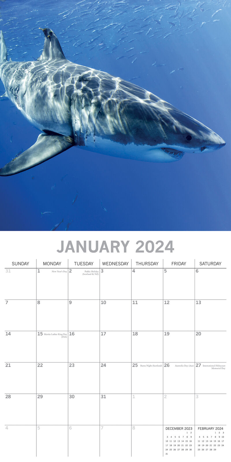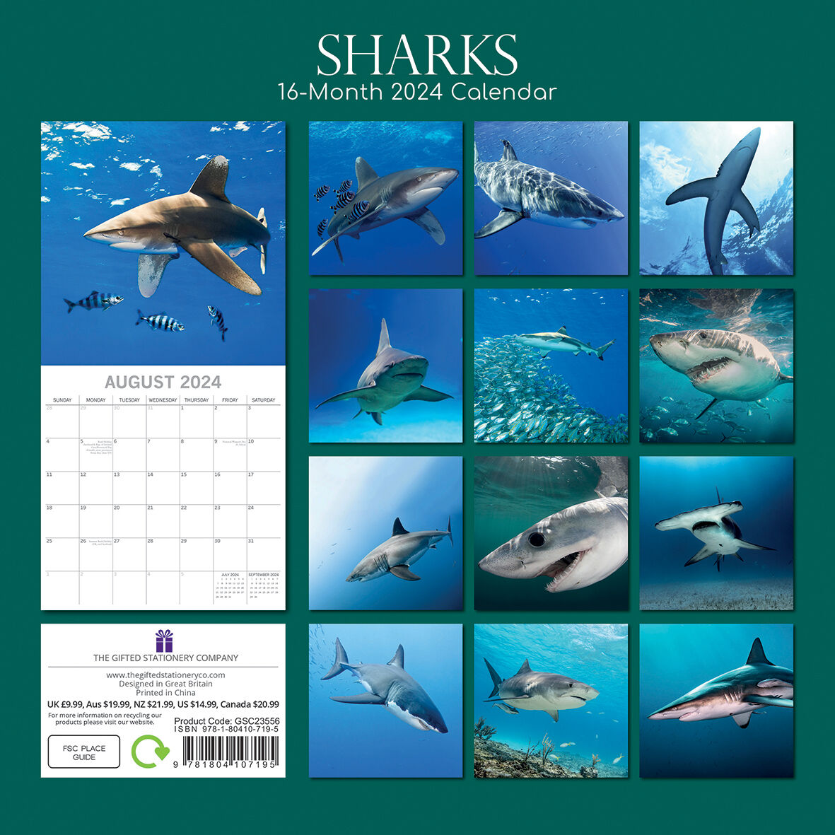 Shake off the stereotype of Jaws and feast your eyes on the beauty of this Sharks calendar for 2024. This misunderstood animal is captured under the sea in its natural habitat. Brand New Calendar with Beautifully design, Sealed in Original Packaging, each calendar includes a large grid running from Sunday to Saturday. Publisher: The Gifted Stationery Co. Dimensions: 30cm (w) x 30cm (h) closed; 30cm (w) x 60cm (h) opened Time Span: 16 months (January to December 2024 monthly, September to December 2023 on-a-page) 2024 Square Wall Calendar featuring beautiful colour photographed images for every month of the year. Like most Wall calendars, this one comes with: