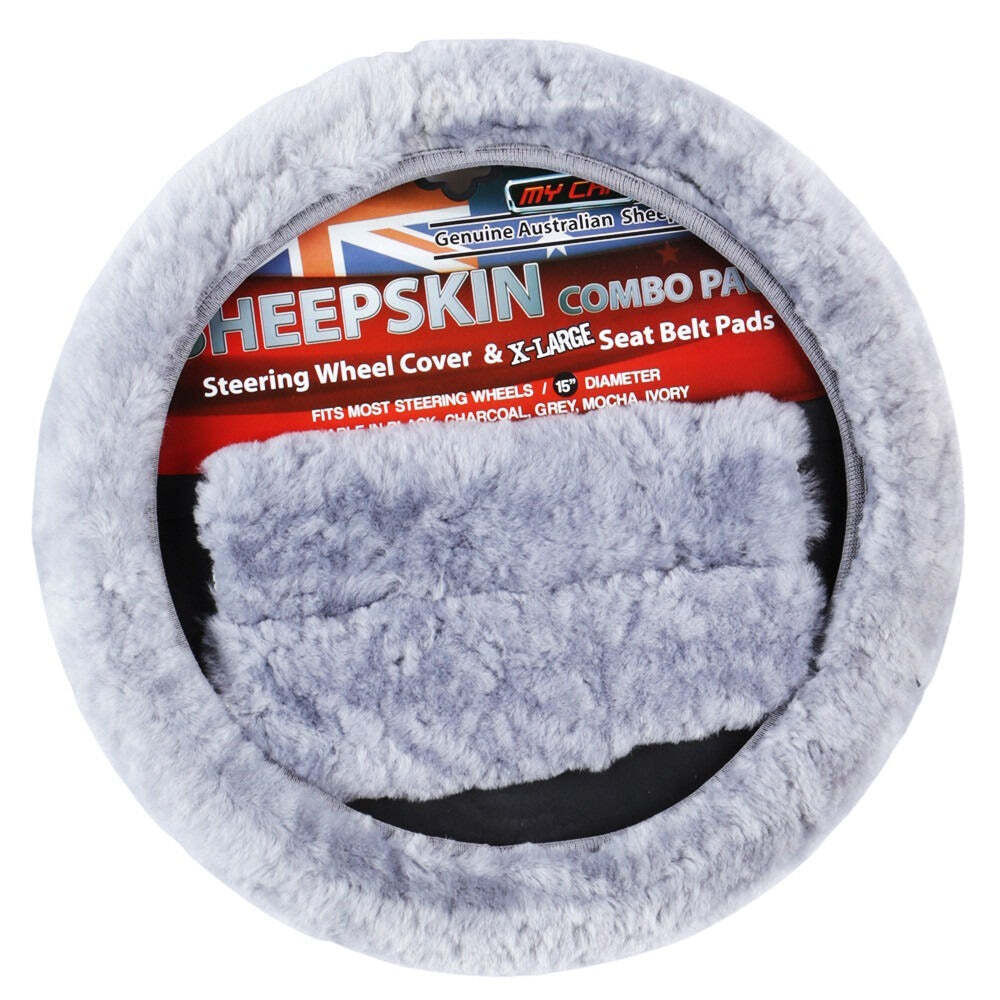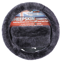 100% Genuine Australian Sheepskin Steering Wheel Cover And Seat Belt Pad Combo, High-Quality And Extremely Comfortable.