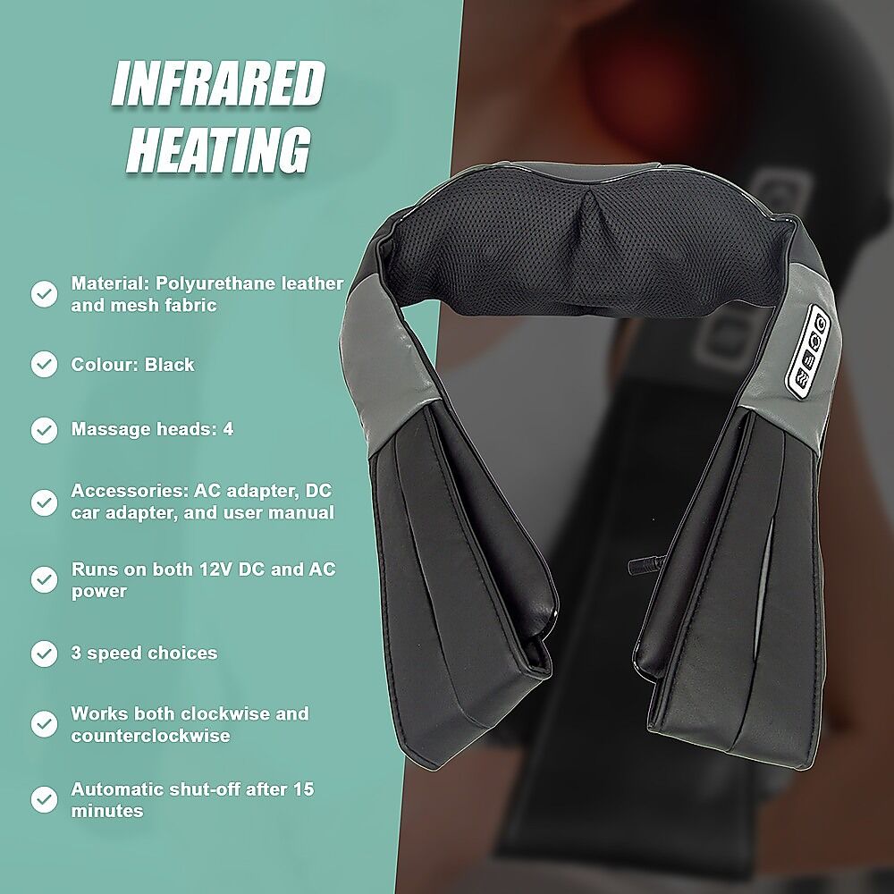 This massager works on both your neck and back, with eight kneading nodes working deep into your muscles to relieve soreness and stiffness. It's portable, so you can use it while you're working in your office, driving in your car, or watching a game of footy in your comfy chair at home. With three speeds and two directions (clockwise and counterclockwise) to choose from, you can customise your massage to your exact needs. Long straps allow you to adjust it to your unique anatomy. Crafted from durable PU leather and breathable mesh, it's easy to clean between uses. Just wipe it down with a damp cloth or disinfectant wipe, and it's good to go for the next time. Featuring both a car and AC adapter, you can take it along when you travel. It also makes a great gift for athletes, seniors, or anyone else who enjoys a great massage. Get yours today!