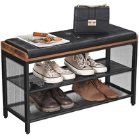 Risk a second Look: Shiny black faux leather, 2 close-meshed steel mesh shelves for shoes, all this is broken by a vintage finish in robust wood look - there is really much to discover on this bench/shoe bench