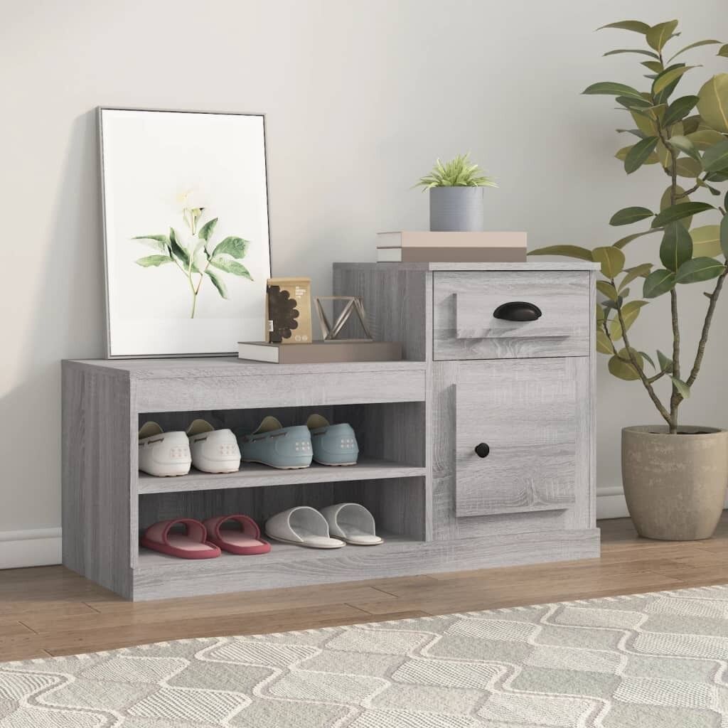 $97.75Keep your shoes away from dust and clutter to create a tidy environment with this elegant shoe cabinet. Durable material: The engineered wood is of exceptional quality with smooth surface and also features strength, stability and resistance to moisture.Ample storage space: The shoe cupboard features a low and a high cabinet, providing ample storage space for keeping all types of shoes and other small items well organised.Displaying function: You can also place your favourite decorative items such as vases, and potted plants on top of the shoe organiser to enrich your life. Good to know:To make assembly as easy as possible, each product is delivered with a manual. Warning:To prevent it being overturned, this product must be used with the provided wall attachment device.