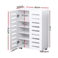 $101.51Discover seamless organisation with our Artiss Alster Shoe Cabinet. Featuring durable construction, a melamine finish, and two compartments with storage space for up to 20 pairs of shoes, it marries style with functionality - transforming clutter into a tastefully organised display in your entryway. With five storage tiers and three adjustable shelves, you can accommodate all different types of shoes and other accessories. The ventilated doors are perfect to encourage proper airflow and prevent mould and mildew, and they're set on heavy-duty hinges and magnetic door fittings for long-lasting use. Best of all, you purchase includes an anti-tip kit for safety. Enjoy your new organised and tidy hallway with the Artiss Alster Shoe Cabinet.