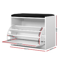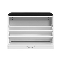 Get yourself a shoe cabinet with an aesthetic difference. Our Artiss Shoe Storage Bench adds a touch of luxury and multi-functionality to the ubiquitous shoe cabinet. On first impression, it looks just like a plush PU leather stool. Pull down the front panel and you find three tiers of adjustable shoe shelves with ample space for up to 15 pairs of various footwear (depending on shoe sizes). Made from quality particle board, the bench is sturdy and finished in melamine for durability and easy maintenance. Not least, its thoughtful design means that you can place it in your hallway or entrance for a neat and tidy look that blends seamlessly with your home d�cor. So remove the clutter and get organised with our shoe storage bench. We are sure it will feet right in with your discerning taste for all things stylish and chic.