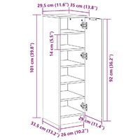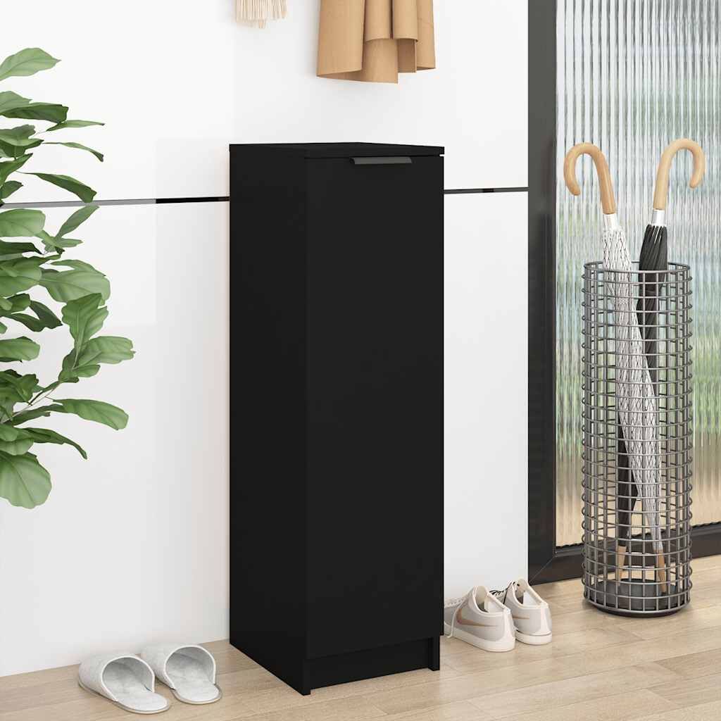 With this shoe cabinet, you don't have to be annoyed ever by shoes cluttering up your house. Sturdy material: The engineered wood is of exceptional quality with smooth surface and also features strength, stability and resistance to moisture. Ample storage space: The shoe storage boasts a door and shelves, which allows you to keep your shoes well organised and within reach.Practical door: Keep your shoes free from dust by hiding them behind the door of the shoe rack.Sturdy top: The top of this shoe storage cabinet can be used to display decorative objects such as photo frames and potted plants. Warning:To prevent it being overturned, this product must be used with the provided wall attachment device.