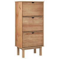 With this delicate and sturdy wooden shoe cabinet, you can store your shoes effectively and also add practical decor to your home. Solid pine wood: Solid pine wood is a beautiful natural material. Pine wood has a straight grain, and the knots give the material its signature, rustic look.Stable frame: The wooden frame ensures sturdiness and stability.Ample storage space: The shoe storage has 3 flip-drawers with 2 rows of space for each, providing ample storage space for keeping your shoes and other items well organised.Sturdy top: The top of the shoe cupboard can also be used to display your favourite decorative objects. WARNING:In order to prevent overturning, this product must be used with the wall attachment device provided. Note:Each product comes with an assembly manual in the box for easy assembly.