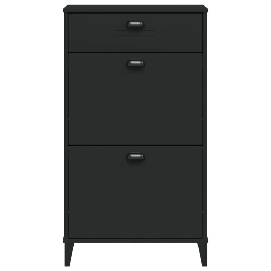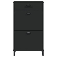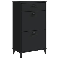With this shoe cabinet, you can store your shoes effectively and also add practical decor to your home. Durable material: The engineered wood is of exceptional quality with smooth surface and also features strength, stability and resistance to moisture.Ample storage space: The shoe cupboard has 2 flip-drawers with 2 rows of space for each, providing ample storage space for keeping your shoes and other items well organised.Sturdy top: The top of the shoe organiser can also be used to display your favourite decorative objects.Practical handle: The shoe stand comes with handles that make it easy to open and close the cabinet while adding extra beauty. Warning:To prevent it from tipping over, this product must be used with the provided wall attachment device.