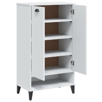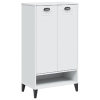 With this shoe cabinet, you can store your shoes effectively and also add practical decor to your home. Durable material: The engineered wood is of exceptional quality with smooth surface and also features strength, stability and resistance to moisture.Ample storage space: The shoe cupboard offers ample storage space to keep your shoes well-organised and offers a clean and clutter-free living area.Sturdy top: The top of the shoe organiser can also be used to display your favourite decorative objects.Practical handle: The shoe stand comes with handles that make it easy to open and close the cabinet while adding extra beauty. Warning:To prevent it from tipping over, this product must be used with the provided wall attachment device.