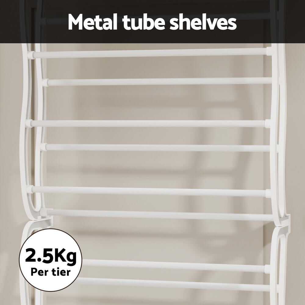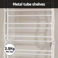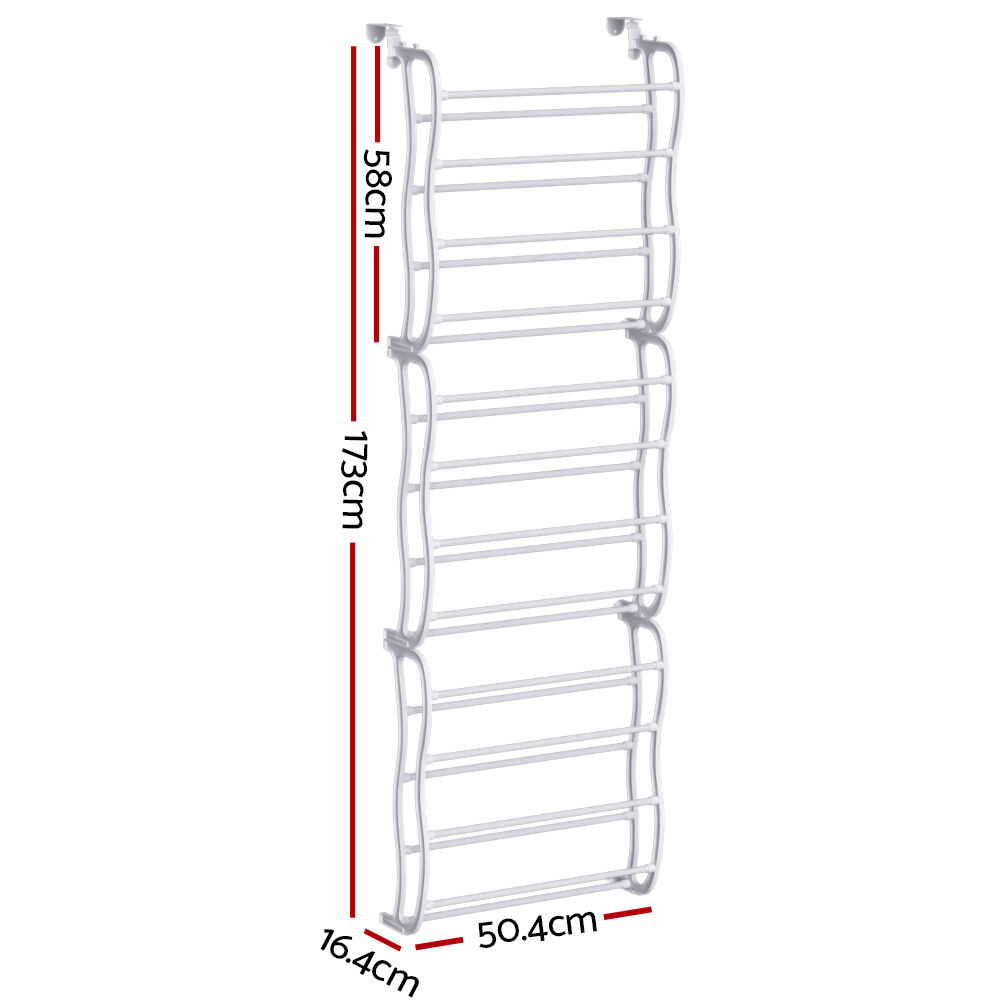 As your shoe collection grows, so should your shoe storage. An Artiss Eric Shoe Rack is exactly what you need to keep loose shoes tidy and organised. The rack hangs neatly from your door and features non-slip pads to prevent disturbance throughout the day. Made from a durable plastic frame and metal tube shelves, this multipurpose storage rack has a 2.5kg weight capacity per shelf, making it ideal for up to 24 pairs of shoes. The rack allows for easy ventilation, preventing bacteria growth, mould growth, and odours. Best of all, the rack doesn't require any tools to build: simply connect and go. With so many options at your disposal, it's easy to see why the Artiss Eric Shoe Rack is the right choice for your entryway, bedroom, or walk-in wardrobe.