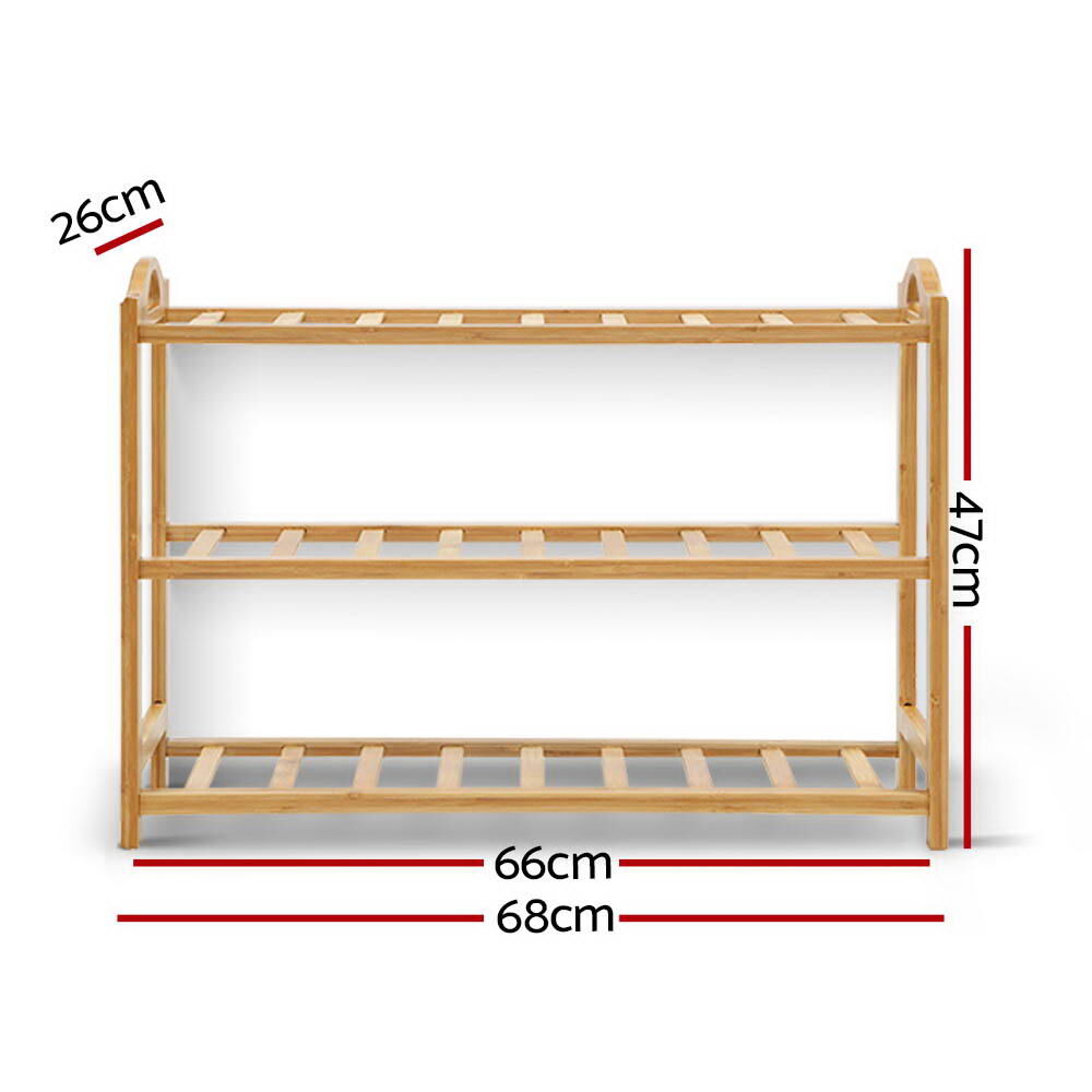 Made from quality and durable bamboo, the Shoe Rack comprises a 3-tier rack that can store up to 15 pairs of your walking, running and lifestyle footwear. It is eco-friendly, non-toxic and tough, with countersunk screws and rounded corners to enhance its safe usage. Two convenient integrated handles facilitate easy carrying while the open design allows for good ventilation for your footwear wherever you place it. In the hallway, balcony, patio, bedroom or children's room, the Bamboo Shoe Rack will certainly not be deemed out of character with your home decoration.