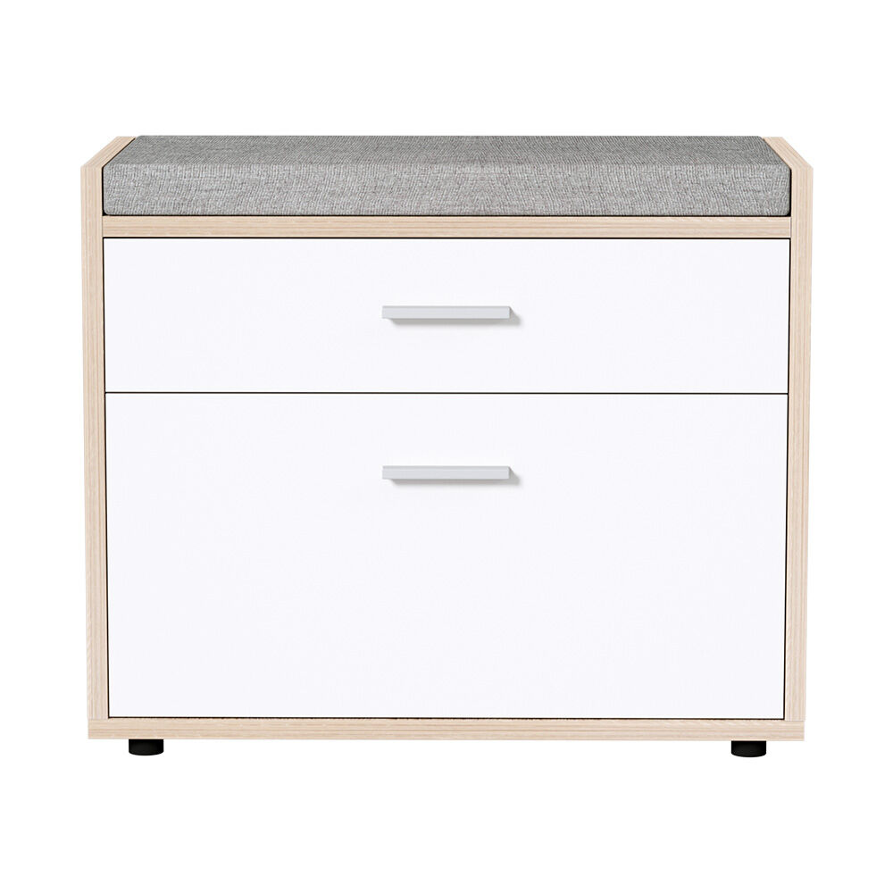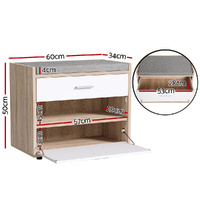 $87.41Get yourself a shoe storage cabinet with an aesthetic difference. Our Artiss Shoe Storage Bench blends two functions into one elegant piece. On first impression, it looks just like a plush stool. Pull down the bottom cabinet door and you find two tiers of shelves with ample space for 6 to 8 pairs of various footwear. Plus, the panel in the middle is adjustable or removable for bigger shoes. There is also a spacious top drawer with smooth anti-rust runners for all your other footwear essentials such as shoe polish and spare shoelaces. Made from quality particle board, the bench is sturdy and finished in smooth paper veneer for durability and easy maintenance. Best of all, its thoughtful design means that you can place it in your hallway or entrance for a neat and tidy look that blends seamlessly with your home décor. So remove the clutter and get organised with our shoe storage bench. We are sure it will feet right in with your discerning taste for all things stylish and chic.