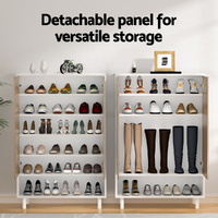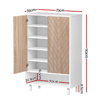 NOW $146.66This Artiss shoe cabinet features a particle board frame with a paper veneer finish, herringbone-patterned MDF board, and pine wood legs. It includes a detachable panel, push-to-open door, open bottom shelf, and stores up to 24 pairs. Easy to clean and assemble.