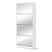 $162.61A practical and stylish shoe cabinet. And a full-length dressing mirror. Two absolute essentials that any discerning fashionista needs. And you can now have both in one with our Artiss Mirror Shoe Cabinet. The four storage compartments are pull-down for easy access and have adjustable shelves so that they can fit different footwear of all shapes and sizes. In fact, up to 60 of your favourite pairs would fit comfortably in it. Made of thick particle board with melamine finish, the shoe cabinet is strong and durable to withstand daily robust use. The mirror front of the closed compartments becomes a clear and bright full-length mirror for convenient match-ups of clothes and shoes. Or just a quick check before heading out. Not least, the contemporary design with push-to-open mechanism definitely lends a touch of elegance to any home. So clear the clutter and reflect your elegant style with our mirror shoe cabinet.
