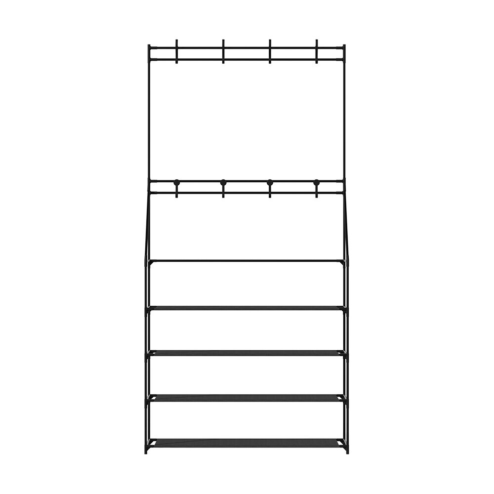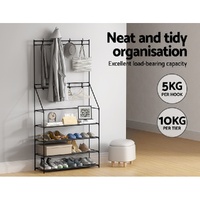 Sneakers, running shoes, flip-flops, boots, high heels, and special-occasion footwear, shoes are never enough! As our shoe collection gets out of hand, your first instinct may be to chuck them on the floor, gradually resulting in a shoe explosion. With our Artiss shoe rack, you can keep your beloved shoes organised and prevent them from getting scuffed or looking worn. It flaunts 3-in-1 design that allows you to hang your coats and jewellery, keep your footwear, and put your beloved purses for display on the non-woven fabric storage rack. Featuring meticulous craftsmanship, our shoe rack boasts a sturdy and durable structure with black powder-coated metal tubes and non-slip foot pads. It has an additional support rod for stability and comes with two sets of wall attachments. Additionally, it’s equipped with eight double hooks with 5kg weight holding capacity per hook, and each tier has a 10kg weight holding capacity with 17cm tier height. The shoe storage is suitable for most shoe types and can fit up to 16 pairs of shoes. It comes in a complete package, and the convenient design makes for hassle-free assembly. Furthermore, you don’t require any tools to assemble it. Convenient and versatile, get our Artiss 3-in-1 shoe storage rack today.
