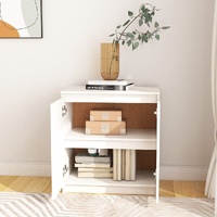 Keep your essential items well organised with this wooden side cabinet! Solid pine wood: The sideboard is made of solid pine wood. Solid pine wood is a beautiful natural material. Pine wood has a straight grain, and the knots give the material its signature, rustic look.Ample storage space: Equipped with 2 compartments, the cabinet offers ample storage space for keeping your various daily essentials well organised and within easy reach.Displaying function: The top of the sideboard cabinet is great for displaying your decorative items, photo albums or small plants. Warning:To prevent it being overturned, this product must be used with the provided wall attachment device.
