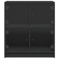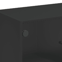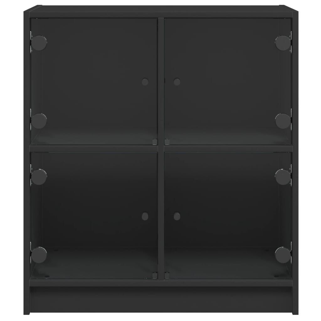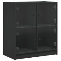 This side cabinet, featuring a timeless look, is meant to be an excellent addition to your home. Durable material: The engineered wood is of exceptional quality with smooth surface and also features strength, stability and resistance to moisture.Ample storage space: The cupboard offers ample storage space for keeping your various daily essentials well-organised and within easy reach.Displaying function: The top of the storage cabinet is great for displaying your decorative items, photo albums or small plants.Practical glass doors: Keep your space clutter-free by hiding small essentials behind the doors of the cabinet. In addition, the glass doors allow you to see inside the storage cabinet to display items beautifully. Warning:To prevent it from tipping over, this product must be used with the provided wall attachment device.