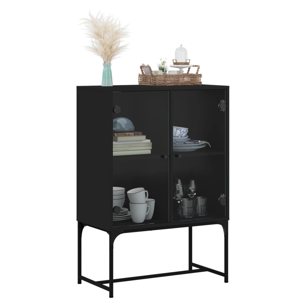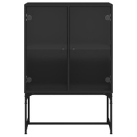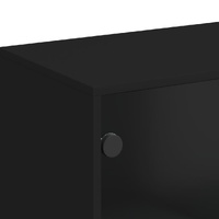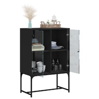 This side cabinet, featuring a timeless look, is meant to be an excellent addition to your home. Durable material: The engineered wood is of exceptional quality with smooth surface and also features strength, stability and resistance to moisture.Ample storage space: The cupboard offers ample storage space for keeping your various daily essentials well-organised and within easy reach.Displaying function: The top of the storage cabinet is great for displaying your decorative items, photo albums or small plants.Practical glass doors: Keep your space clutter-free by hiding small essentials behind the doors of the cabinet. In addition, the glass doors allow you to see inside the storage cabinet to display items beautifully. Warning:To prevent it from tipping over, this product must be used with the provided wall attachment device.