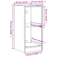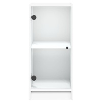 This side cabinet, featuring a timeless look, is meant to be an excellent addition to your home. Durable material: The engineered wood is of exceptional quality with smooth surface and also features strength, stability and resistance to moisture.Ample storage space: The cupboard offers ample storage space for keeping your various daily essentials well-organised and within easy reach.Displaying function: The top of the storage cabinet is great for displaying your decorative items, photo albums or small plants.Practical glass doors: Keep your space clutter-free by hiding small essentials behind the doors of the cabinet. In addition, the glass doors allow you to see inside the storage cabinet to display items beautifully. Warning:To prevent it from tipping over, this product must be used with the provided wall attachment device.
