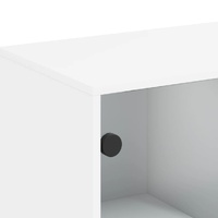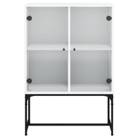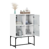 This side cabinet, featuring a timeless look, is meant to be an excellent addition to your home. Durable material: The engineered wood is of exceptional quality with smooth surface and also features strength, stability and resistance to moisture.Ample storage space: The cupboard offers ample storage space for keeping your various daily essentials well-organised and within easy reach.Displaying function: The top of the storage cabinet is great for displaying your decorative items, photo albums or small plants.Practical glass doors: Keep your space clutter-free by hiding small essentials behind the doors of the cabinet. In addition, the glass doors allow you to see inside the storage cabinet to display items beautifully. Warning:To prevent it from tipping over, this product must be used with the provided wall attachment device.