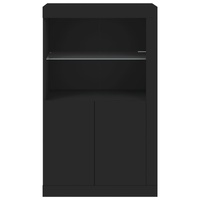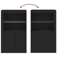 Featuring a trendy yet practical design, this side cabinet with LED lights will definitely become a focal point of your room. Durable material: The engineered wood is of exceptional quality with smooth surface and also features strength, stability and resistance to moisture.RGB LED lights: The cupboard is equipped with vibrant RGB LED lights. With various customisable menus, you can effortlessly change the colour of the lights and even set them to adjust automatically. These LED lights not only enhance the contemporary look of the cabinet but also add to its trendy appeal.Ample storage space: The storage cabinet features a glass shelf and a concealed storage area behind its doors, offering plenty of space to keep your everyday items neatly arranged and easily accessible.Practical door: Keep your essentials free from dust by hiding them behind the doors of this hallway cabinet. Good to know:The product has a USB connector that requires a certified 5V USB power source (not included). Warning:In order to prevent overturning, this product must be used with the wall attachment device provided.