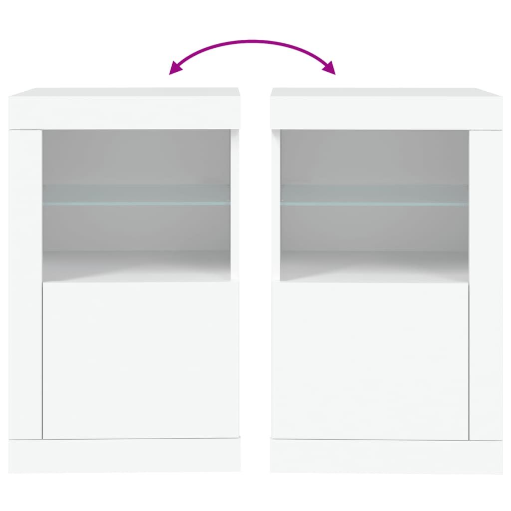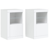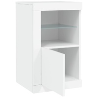 Featuring a trendy yet practical design, these side cabinets with LED lights will definitely become a focal point of your room. Durable material: The engineered wood is of exceptional quality with smooth surface and also features strength, stability and resistance to moisture.RGB LED lights: The cupboard is equipped with vibrant RGB LED lights. With various customisable menus, you can effortlessly change the colour of the lights and even set them to adjust automatically. These LED lights not only enhance the contemporary look of the cabinet but also add to its trendy appeal.Ample storage space: The storage cabinet features a glass shelf and a concealed storage area behind its doors, offering plenty of space to keep your everyday items neatly arranged and easily accessible.Flexible door: You can install the door either on the left side or right side based on your own needs. Good to know:The product has a USB connector that requires a certified 5V USB power source (not included). Warning:In order to prevent overturning, this product must be used with the wall attachment device provided.
