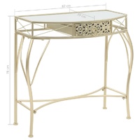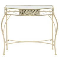 Our French-style side table is an ideal choice for displaying your potted plants, vases or other decorative items. It will make a practical as well as decorative addition to your interior decor with its striking design. The table is made of metal frame and glass top, stable and easy to clean. The side table has a drawer that is adorned with exquisite details, which gives the table an antique look and creates an air of elegance in your home. The item is easy to assemble. Warning: To prevent it being overturned, this product must be used with the provided wall attachment device.