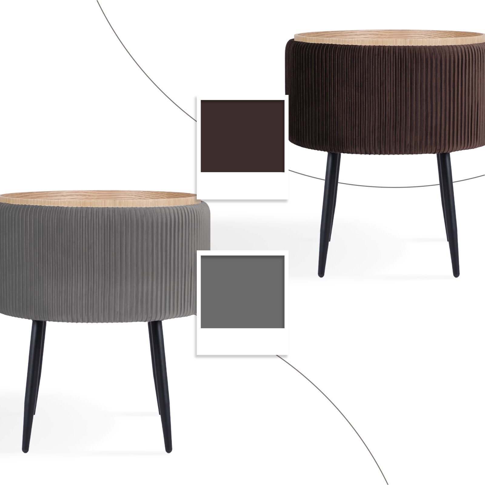 La Bella Side Table Storage Ottoman - Velvet Padded Stool Vanity Footstool CLEO - Grey