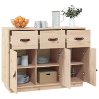 This classic wooden sideboard is a perfect addition to your bedroom, living room, or office, creating a lasting impression! Sturdy material: Solid pine wood is a beautiful natural material. Pine wood has a straight grain, and the knots give the material its signature, rustic look.Ample storage: This sideboard has 6 compartments and 3 drawers, providing ample storage space for keeping your magazines, books, DVDs and multimedia devices well-organised and within reach.Displaying function: The sturdy top of this side cabinet is a perfect spot for displaying your favourite decorative objects, photo frames and potted plants. Warning:In order to prevent overturning, this product must be used with the wall attachment device provided. Note:Each product comes with an assembly manual in the box for easy assembly.