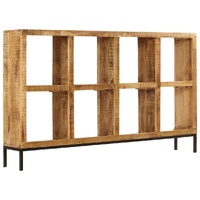 This wooden sideboard oozes a timeless charm that will make a truly eye-catching addition to your home decor. This vintage cabinet is made of solid mango wood, a hardwood with dense grains. Rough mango wood not only has the strength to bear the weight, but also stands the wear and tear of time. As a consequence, this side table is exceedingly stable, durable and attention-grabbing. The exquisite craftsmanship and elegant wood grains make every piece of furniture distinctive and slightly different from the next. Additionally, this solid wood cabinet features 8 compartments, providing commodious storage space for your decorative items, books, as well as various other items. Important note: The colours and wood grain may vary from piece to piece, making each hall table unique. The delivery is random, ensuring the exclusivity and individuality of your product.