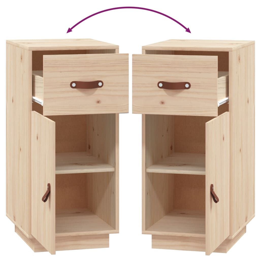 This classic wooden sideboard is a perfect addition to your bedroom, living room, or office, creating a lasting impression! Sturdy material: Solid pine wood is a beautiful natural material. Pine wood has a straight grain, and the knots give the material its signature, rustic look.Ample storage: This sideboard has 2 compartments and a drawer, providing ample storage space for keeping your magazines, books, DVDs and multimedia devices well-organised and within reach.Displaying function: The sturdy top of this side cabinet is a perfect spot for displaying your favourite decorative objects, photo frames and potted plants. Warning:In order to prevent overturning, this product must be used with the wall attachment device provided. Note:Each product comes with an assembly manual in the box for easy assembly.