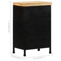 If you're looking for a simple touch of the rustic as well as industrial charm to add to your interior decor, this wooden sideboard will do the trick. The side cabinet is made of rough mango wood, a tropical hardwood with the strength to bear the weight. It also stands the wear and tear of time, making it stable and durable. The powder-coated iron frame also adds extra stability. This cupboard features 3 drawers, providing ample storage space. Additionally, the sturdy wooden top is ideal for displaying decorative objects such as photo frames, potted plants, vases, etc. Important note: Colours and grains may vary from piece to piece, making each piece unique. The delivery is random, ensuring the exclusivity and individuality of your product.
