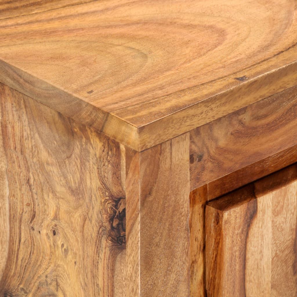 The wooden sideboard adds a unique vintage style to your living room! This side cabinet is made of solid wood, which is durable and beautiful. The craftsmanship and the beautiful wood grains make every piece of furniture unique and slightly different from the next. This home organiser also features 2 doors providing ample storage space for keeping your essential items organised and within reach. Important note: Colours and grains vary from piece to piece, making each piece unique. The delivery is random, ensuring the exclusivity and individuality of your product.