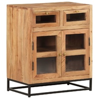 Introduce an air of industrial charm into your home decor with this stylish wooden sideboard! This side cabinet is made of solid acacia wood, making it sturdy and stable. The craftsmanship and the beautiful wood grains make every piece of furniture unique and slightly different from the next. The storage cabinet is equipped with 2 shelves and 2 drawers, so you can display or keep any items you'd like well organised. What's more, the steel base adds to its sturdiness. Important note: The wood grains and colours vary from piece to piece, making each vitrine cabinet unique.