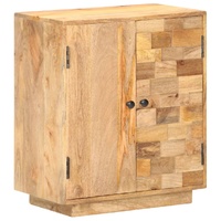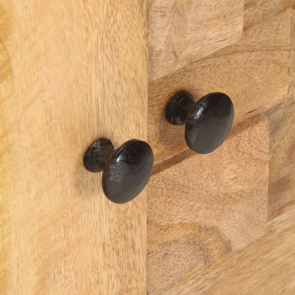This wooden sideboard adds a vintage style to your home decor. The side cabinet is made of solid mango wood with natural timber fine finish, a tropical hardwood with the strength to bear the weight. It also stands the wear and tear of time, making it stable and durable. The craftsmanship and the beautiful wood grains make every piece of furniture unique and slightly different from the next. It features two doors and provides ample storage space. Additionally, the sturdy top is ideal for displaying decorative objects such as photo frames, potted plants, vases, etc. Important note: Colours and grains may vary from piece to piece, making each piece unique. The delivery is random, ensuring the exclusivity and individuality of your product.