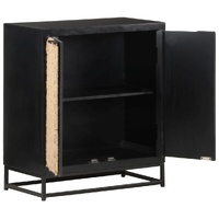 This wooden sideboard adds an industrial style to your living room. The side cabinet is made of solid mango wood, a tropical hardwood with the strength to bear the weight. It also stands the wear and tear of time, making it stable and durable. The door is made of natural jute and the iron base also adds extra stability. This storage cabinet features two doors providing ample storage space. Important note: Colours and grains may vary from piece to piece, making each piece unique. The delivery is random, ensuring the exclusivity and individuality of your product.