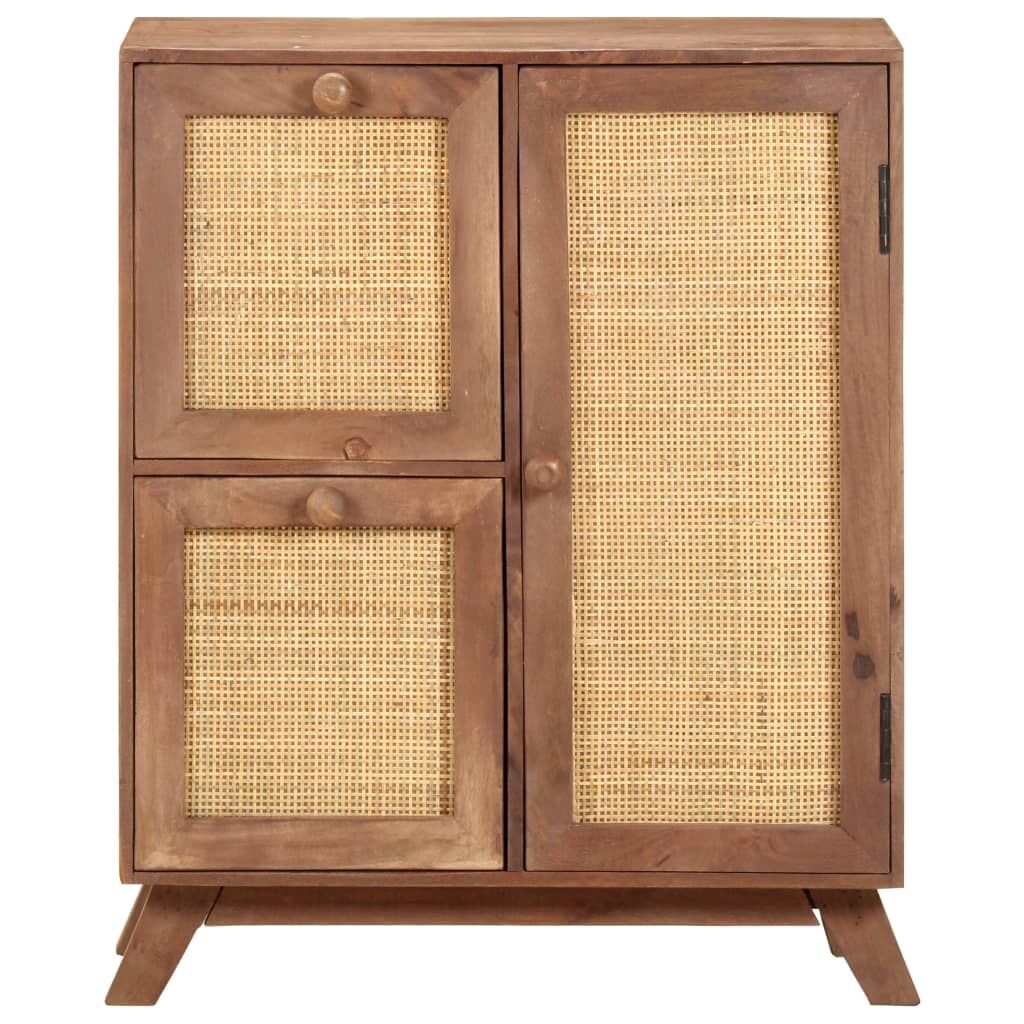 This wooden sideboard gives your home decor a touch of rustic charm with its timeless design. This drawer cabinet is made of solid mango wood, a tropical hardwood. It has the strength to bear the weight and also stand the wear and tear of time. Additionally, the exquisite craftsmanship and beautiful wood grains make every piece slightly different from the next. This side cabinet features 2 drawers and 1 door, providing ample storage space for your items. Important note: The colours vary from piece to piece, making each piece unique. The delivery is random, ensuring the exclusivity and individuality of your product.